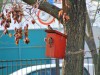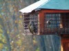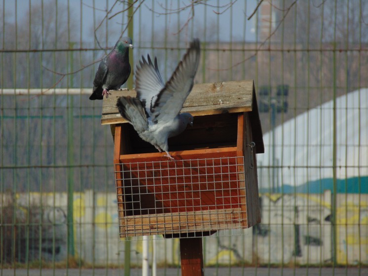 A nagy madáretető tavaly felújított teteje jól állja az időjárást és a galambok, varjak, szarkák rendszeres látogatásait. Az önetető azonban, aminek őszre megrepedt a fából készült teteje, nem jelentett nagy kihívást a varjaknak, akik lazán felfeszítették, a letört darabot pedig ledobták a földre. Az így nyitottá vált etető most a galambok kedvenc tartózkodási helye.