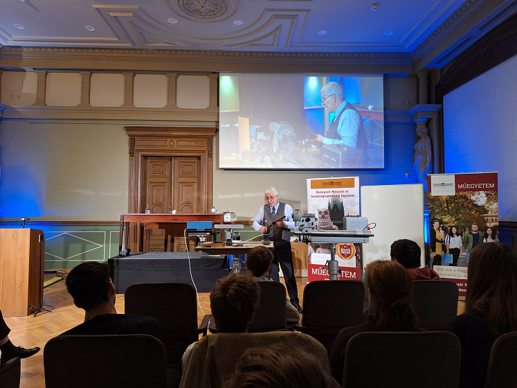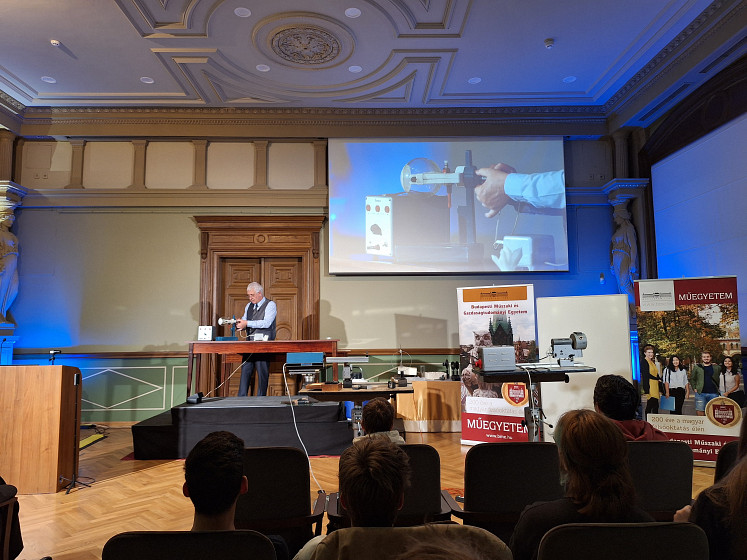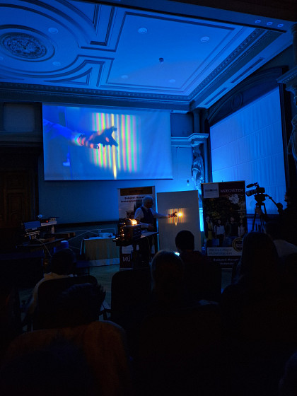 Ismét Härtlein Károly, a BME Fizika Intézetének mesteroktatója demonstrálta a kísérleteket. Az előadás közben a Tanár úr bemutatta, hogy ha valamit szívvel-lélekkel csinálunk, akkor azt még 10, 20 vagy akár 30 év után is ugyanazzal az élvezettel csinálhatjuk, mint első alkalommal.