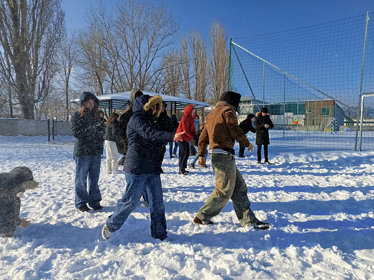 A 10.c osztály Hollander Gyöngyi tanárnő vezetésével megvívta a mohácsi (hó)csatát az iskola udvarán.