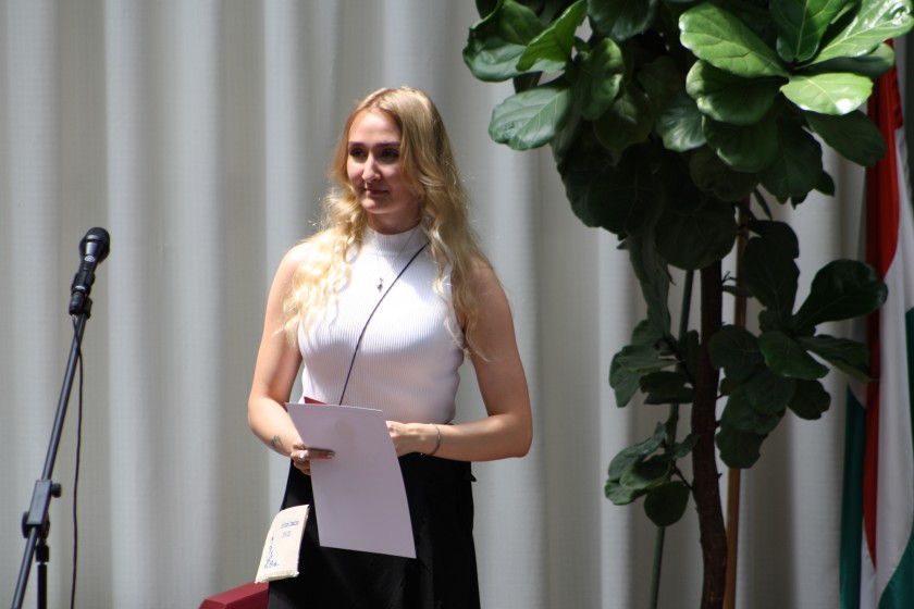 A tantestület szavazása alapján az Ady Endre Gimnáziumi Alapítvány díját ebben a tanévben Tóth Eszter Noémi 12.D osztályos tanuló vehette át.