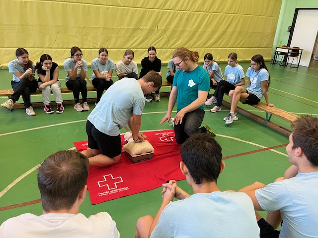 2025. október 7-én a testnevelési órák keretén belül iskolánk mind a négy 10. osztálya részt vett a Budapesti Orvostanhallgatók Egyesülete által szervezett és megtartott alapszintű újraélesztési tanfolyamon. Ezt már hosszú évek óta nagyon fontos ismeretnek tartjuk, minden diákunk részesül a képzésben.