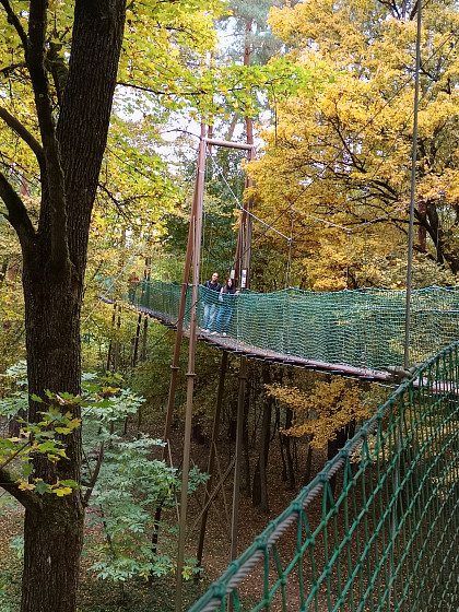 A fák lombjai között kialakított tanösvényen igazán közel kerültünk az élővilághoz, függőhidakon jutottunk át az egyik pontról a másikra. Sokan most először jártunk lombkoronasétányon, de mindenki nagyon bátor volt.