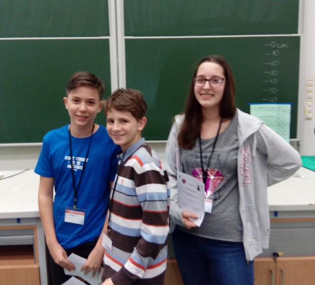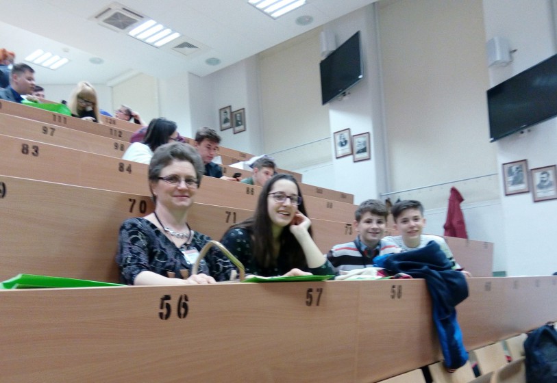 Délután elmentünk a Szegedi Tudományegyetem egyik óriási előadótermébe. Néhány csapat bemutatta a kísérleteit, amiket a fordulók alatt készítettek. Ismerősek voltak a feladatok és ráeszméltünk, hogy esetenként mit rontottunk el, vagy, hogy jól dolgoztunk. Végül a díjkiosztó következett. Mi kaptunk egy oklevelet és könyvutalványokat, amiket örömmel felhasználunk majd. A tanárnő is kapott a segítségéért és munkájáért.