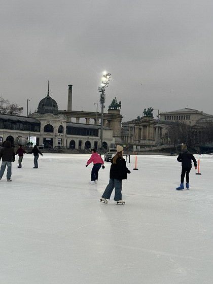 Az elmúlt pár hónapban szerdánként az osztályommal, a 9. E osztállyal, a Városligeti Műjégpályára jártunk korcsolyázni. Ez a külsős program fejlesztette az ügyességünket, az egyensúlyérzékünket és az állóképességünket.
