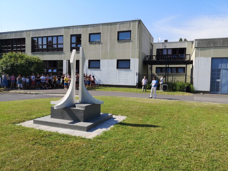 Nem mindennapi ünnepélyes alkalomra került sor iskolánk kertjében. Rajztanárunk, Szabó Csaba tanár úr, szobrászművész „Felemelkedés” című szobrát avattuk föl.