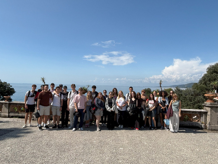 A 12. d osztály szeptemberben 5 napos tanulmányi kiránduláson vett részt Triesztben, melynek során változatos élményeket szereztek diákjaink, és az általuk tanult nyelveket is gyakorolhatták. Az ott töltött napok során a város számtalan arcát megmutatta: egyik nap még zuhogó esőben koptattuk a macskaköveket, másnap már szikrázó napsütésben fürödhettünk a tengerben. A városnézés során mélyebben megismerhettük a város történelmét, majd a Miramare kastély szépségében gyönyörködhettünk. Maradandó élményt nyújtott a Grotta Gigante cseppkőbarlangban tett látogatásunk, mely a Guinness Rekordok Könyvében a világ legnagyobb turisták által látogatható barlangtermeként szerepel. A kirándulás záróakkordja egy ünnepi vacsora volt a város egyik hangulatos éttermében.